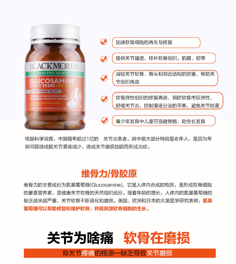 标签 关节灵, 澳佳宝, 维骨力, 葡萄糖胺, 糖胺, blackmores, 关节, 补钙, 骨维力,Blackmores 澳佳宝 葡萄糖胺 维骨力/关节灵 180粒