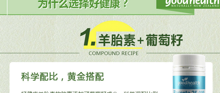 标签 GoodHealth 好健康 羊胎素 葡萄籽 胶囊 25000mg 60粒